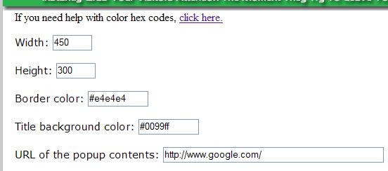 Simply choose what size you want the exit screen to be, what color background you want, and what URL you want it to load. Press the 'Generate' button.